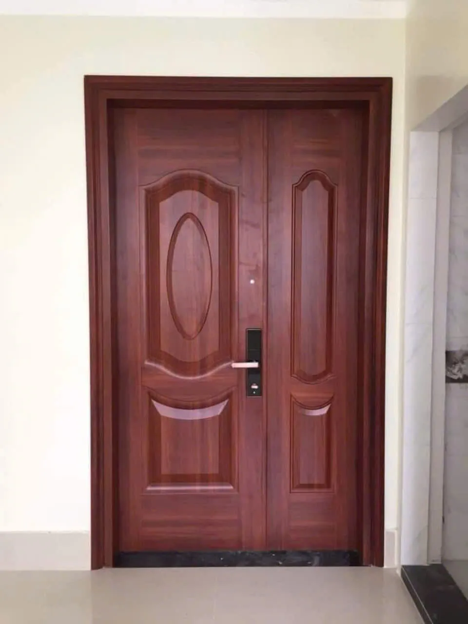 6. Giá thành hợp lý – Tính kinh tế cao : Cửa thép vân gỗ rẻ hơn nhiều so với cửa gỗ tự nhiên nhưng vẫn duy trì được độ bền, thẩm mỹ; tuổi thọ dài (20–30 năm hoặc hơn) khiến chi phí sở hữu trung và dài hạn hợp lý hơn